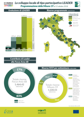 Al 15 ottobre 2018 le Regioni hanno selezionato 200 GAL che interverranno, nella metà dei casi, in zone rurali già beneficiarie dall'intervento Leader.